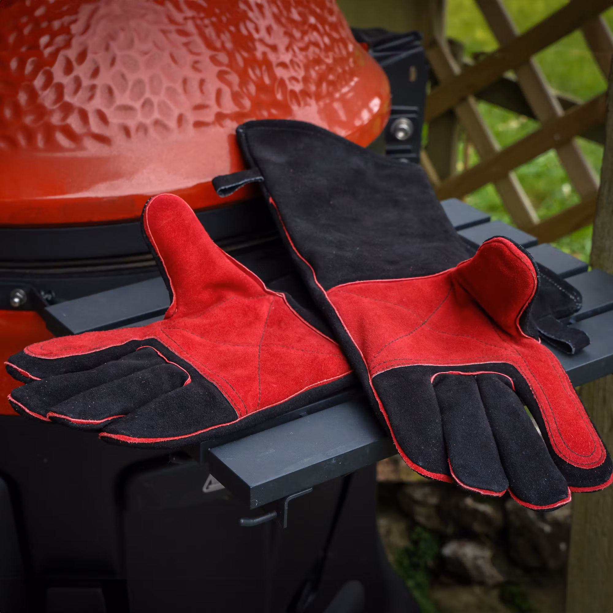 Kamado Joe grillhandskar i läder är framtagna för att ge ett pålitligt skydd vid grillning och BBQ. Det slitstarka lädret skyddar effektivt mot värme, gnistor och heta ytor, samtidigt som du behåller bra grepp och kontroll.