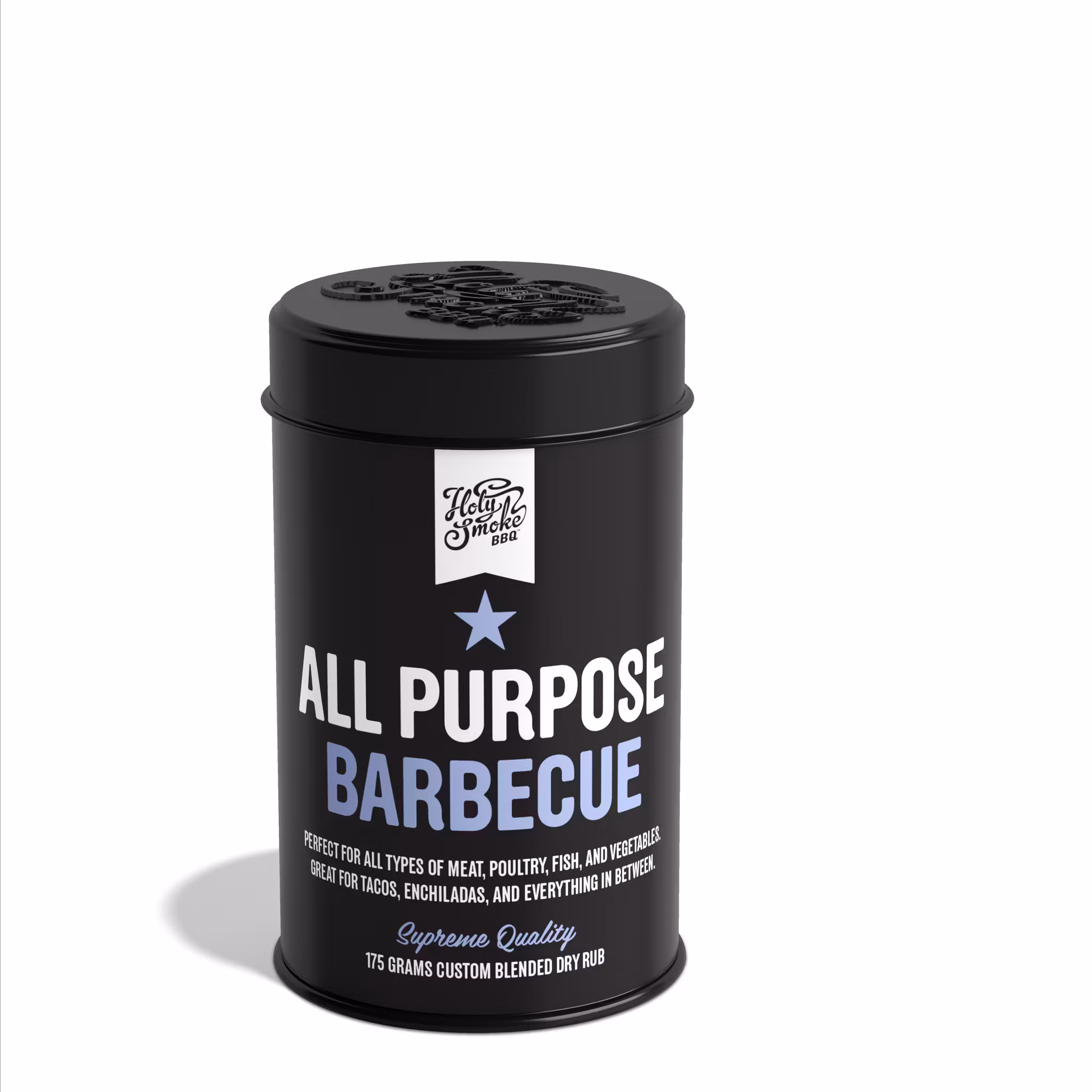 All-Purpose Barbecue Dry Rub från Holy Smoke BBQ är en mångsidig kryddblandning med rötterna i den sydvästamerikanska BBQ-traditionen. Den passar utmärkt till kött, fågel, fisk och grönsaker, men lyfter också rätter som tacos, enchiladas eller grillade majskolvar.