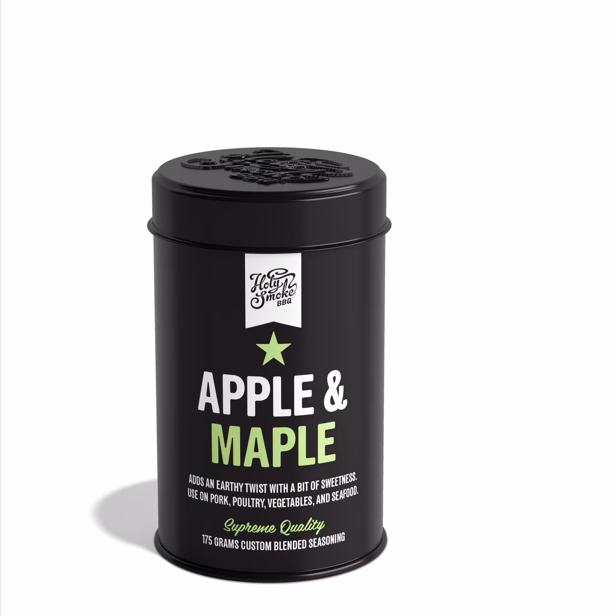 Apple & Maple Seasoning från Holy Smoke BBQ är en mild men smakrik rub med naturlig sötma från äpple (33 %) och lönn (10 %), balanserad med örter, vitlök och vinäger.