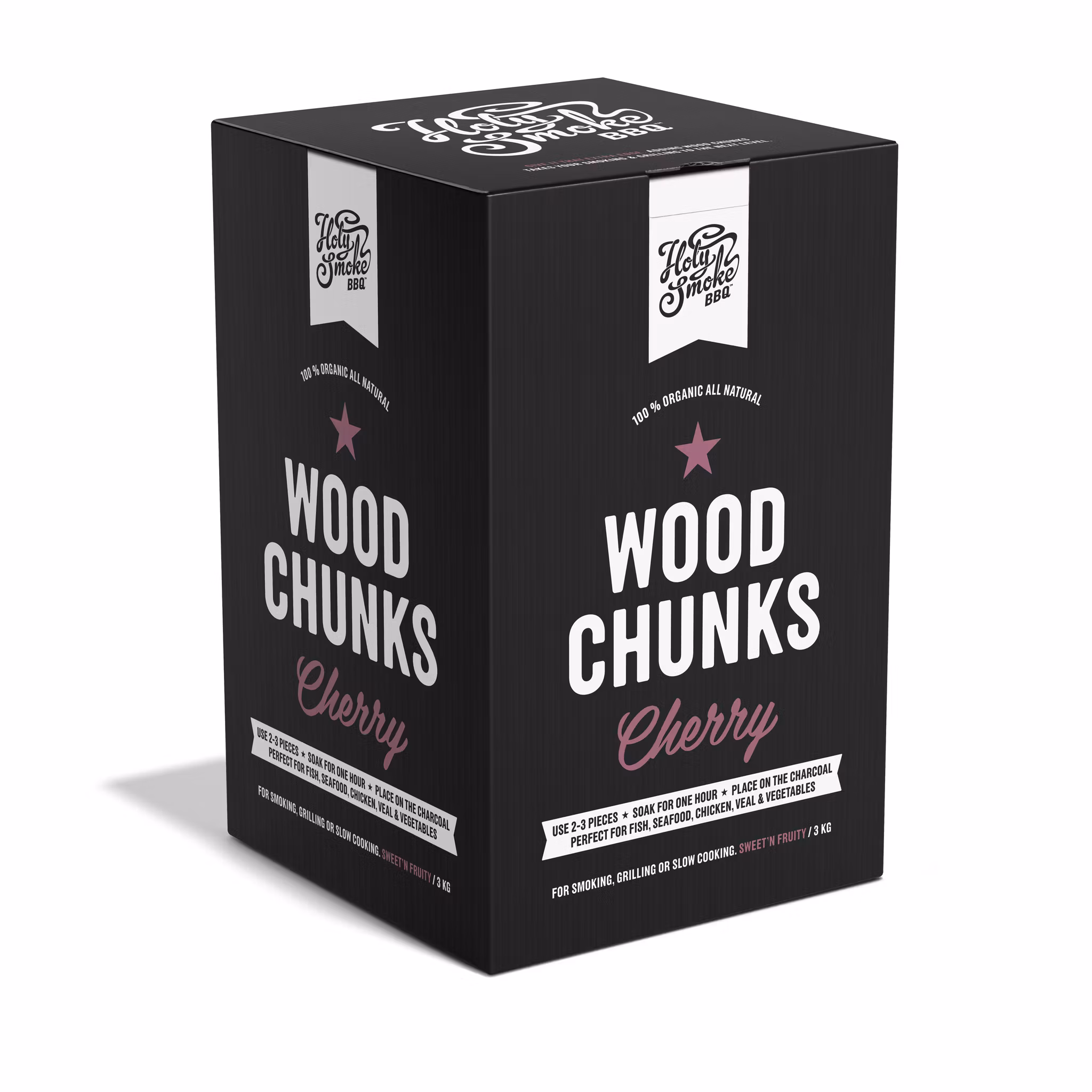 Holy Smoke Cherry Wood Chunks levererar en mild, söt och lätt fruktig rökarom som lyfter smaken utan att dominera. Körsbärsträ är ett populärt val för rökning av fisk, skaldjur, kyckling, kalv och grönsaker, och passar perfekt när du vill addera en rund och elegant BBQ-ton.