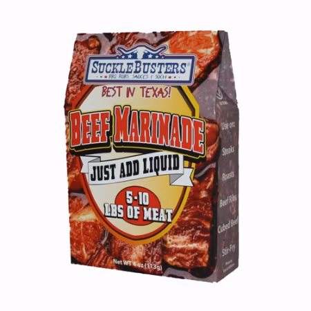 En smakrik marinadblandning framtagen för nötkött – ger saftigare kött och djupare smak.SuckleBusters Beef Marinade är en torr marinadblandning som du själv bla